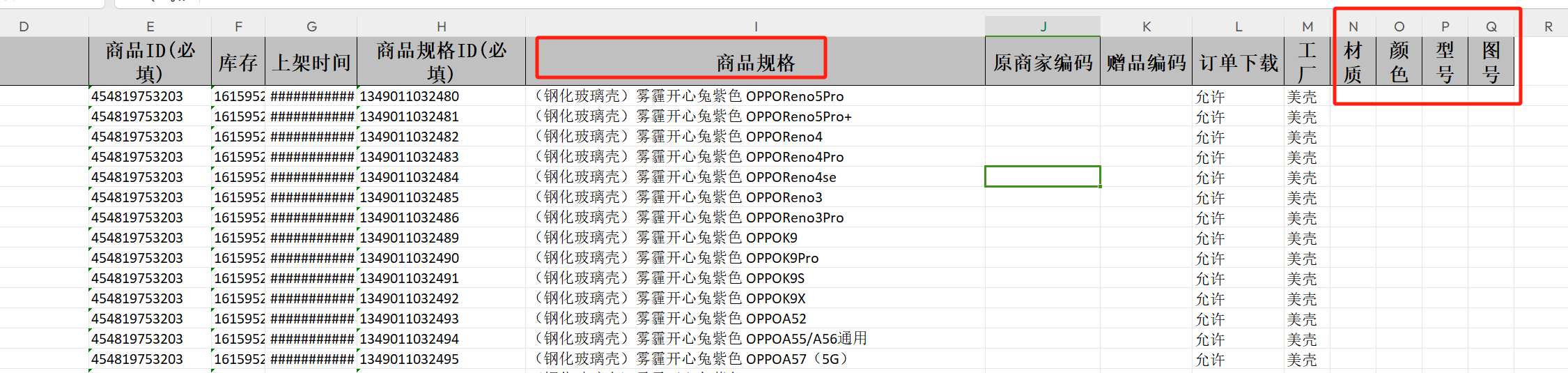 在表格中找到有用的数据,通过表格处理填充到材质、颜色、型号、图号中,填写完成后回到商品页面导入商品即可。