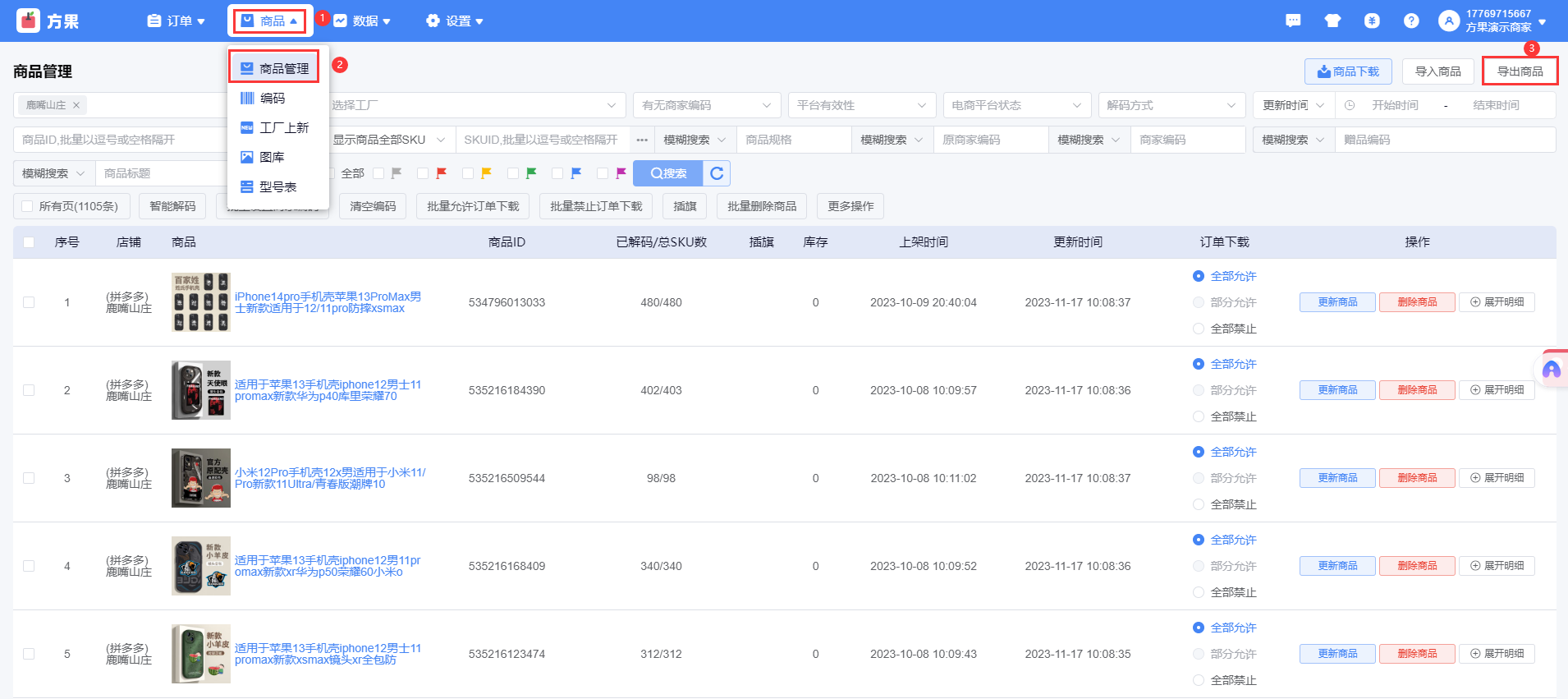 除了智能解码外系统也支持手动解码,在商品页面导出商品数据通过表格处理或者直接从订单上手动解码。
