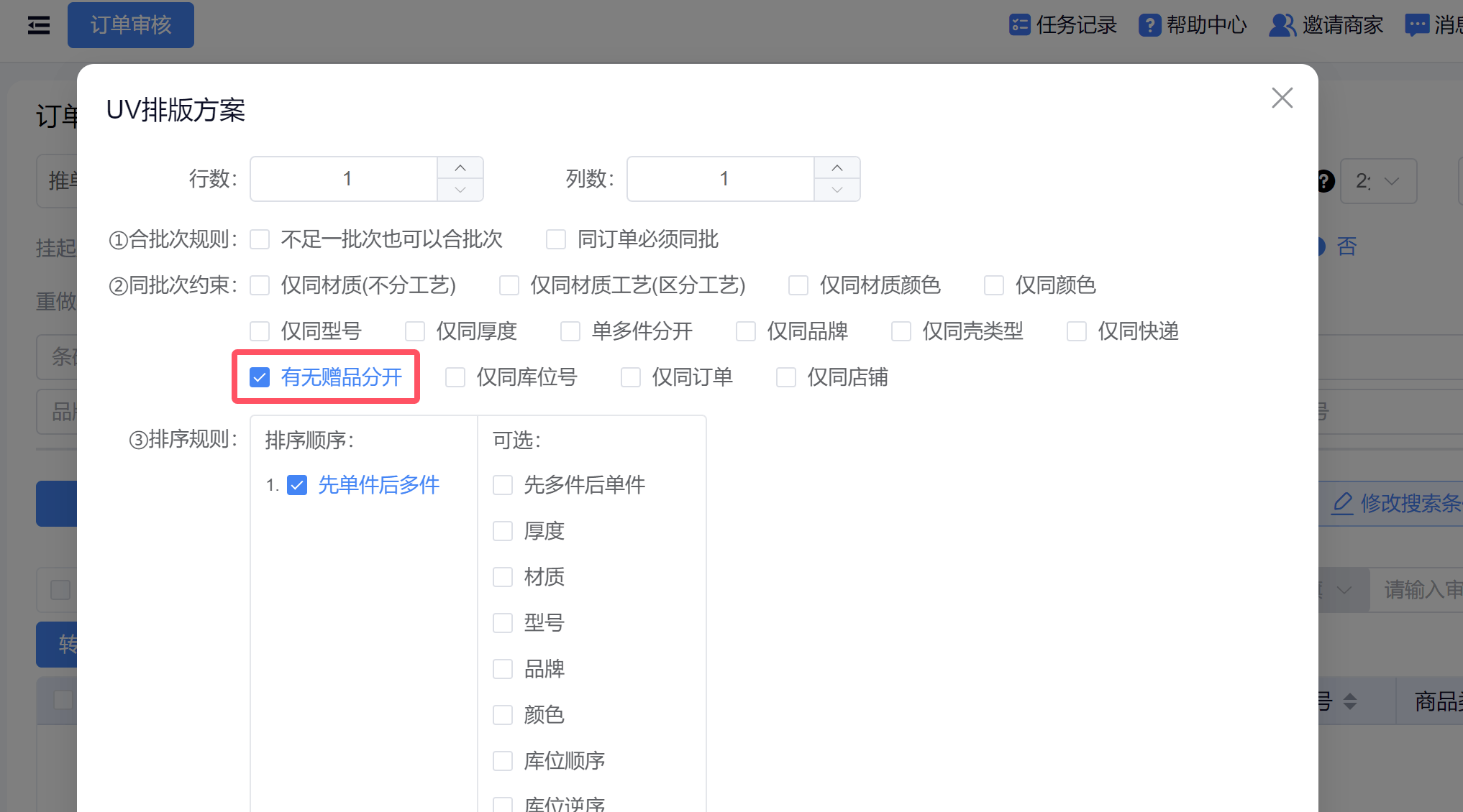 5、UV排版方案“有无赠品判断逻辑优化”:UV排版案中,“有无赠品”的判断需分开处理,通过“随单赠品展示”和“实际赠品”字段来判断,满足其中一个就算。