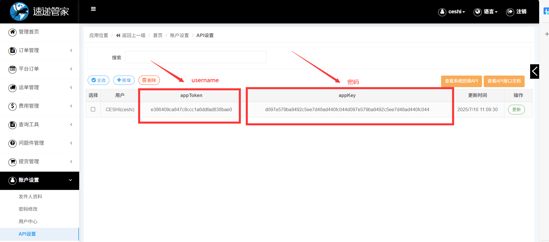 2、授权的appKey和apiSecret和userToken在货代后台获取,也可以联系货代方获取
